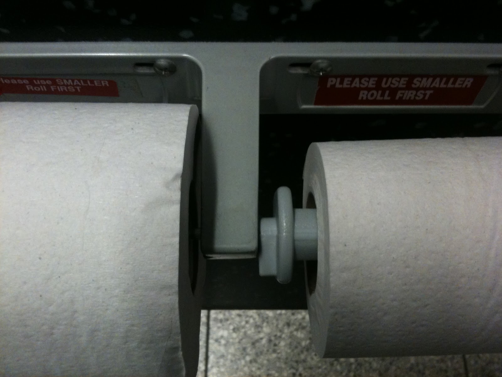 An airport bathroom, somewhere... "Please use smaller roll first."#toiletpaperprotocol